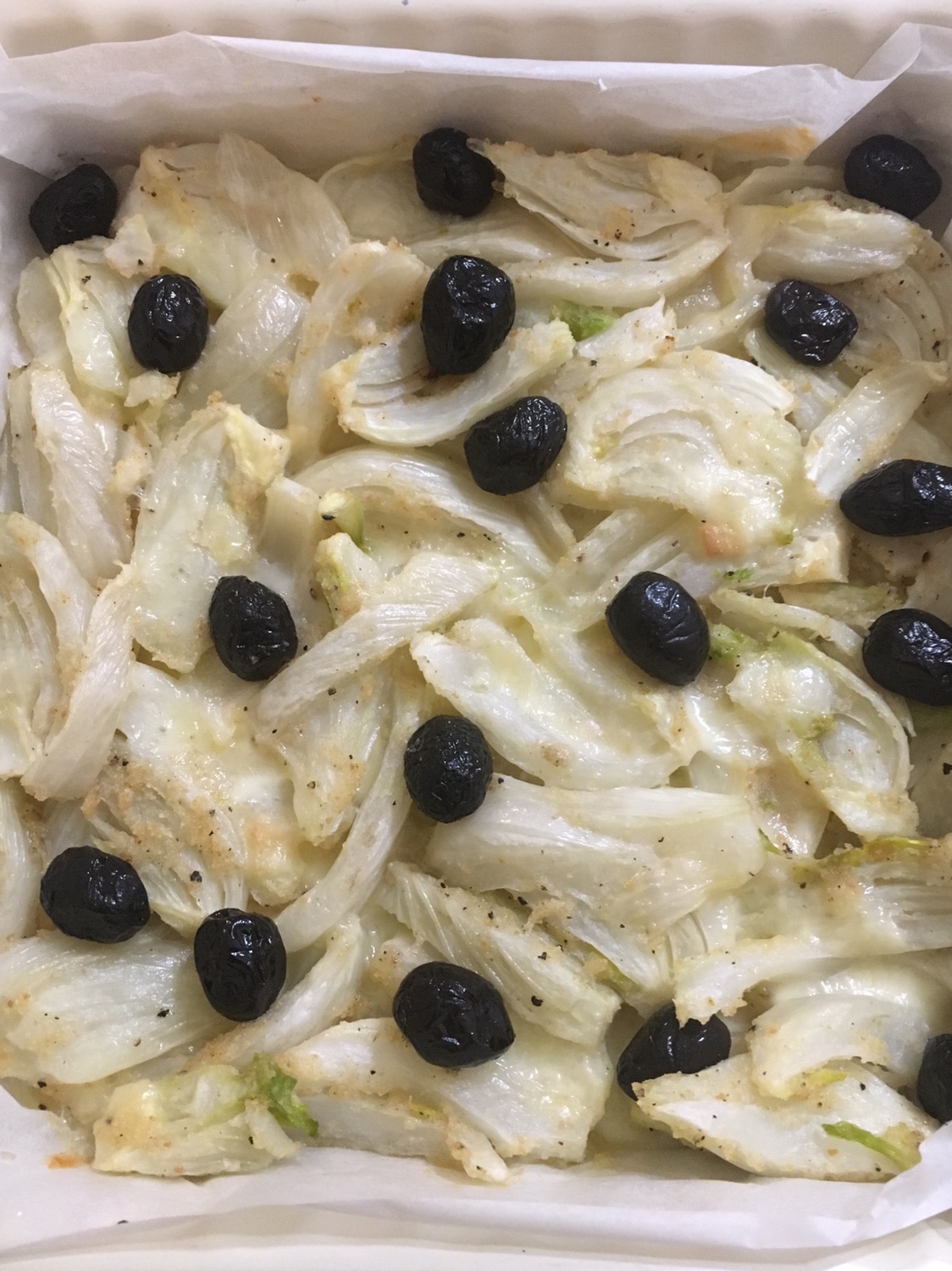 Avrei potuto chiamarli al gratin, dove la traduzione dal francese indica la parola “crosta”, per indicare quella deliziosa crosticina che si forma sopra durante la cottura in forno. Quelli che vedi nella foto sono il risultato di tre finocchi non tanto grandi che avevo in frigo, mi piacciono anche cotti perché li digerisco meglio e faccio meno fatica a masticarli. Sono in versione light, senza besciamella, ma con una chicca che li rende ghiotti, tanti pezzettini di taleggio. Non si nota vero? Perché la sua consistenza di formaggio a pasta molle gli consente di sciogliersi completamente formando come una crema che avvolge il cibo. Ci ho messo anche due olivette nere, con il nocciolo, perché come dice mamma “per cucinare sono meglio…quelle denocciolate hanno meno sapore…”. Davvero sono facilissimi da fare…seguimi…
