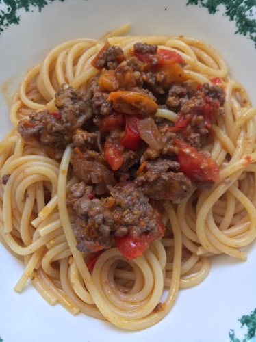 - aggiungi sale e pepe, mescola il tutto e lascia andare il sugo senza coprirlo a fuoco medio ma basso