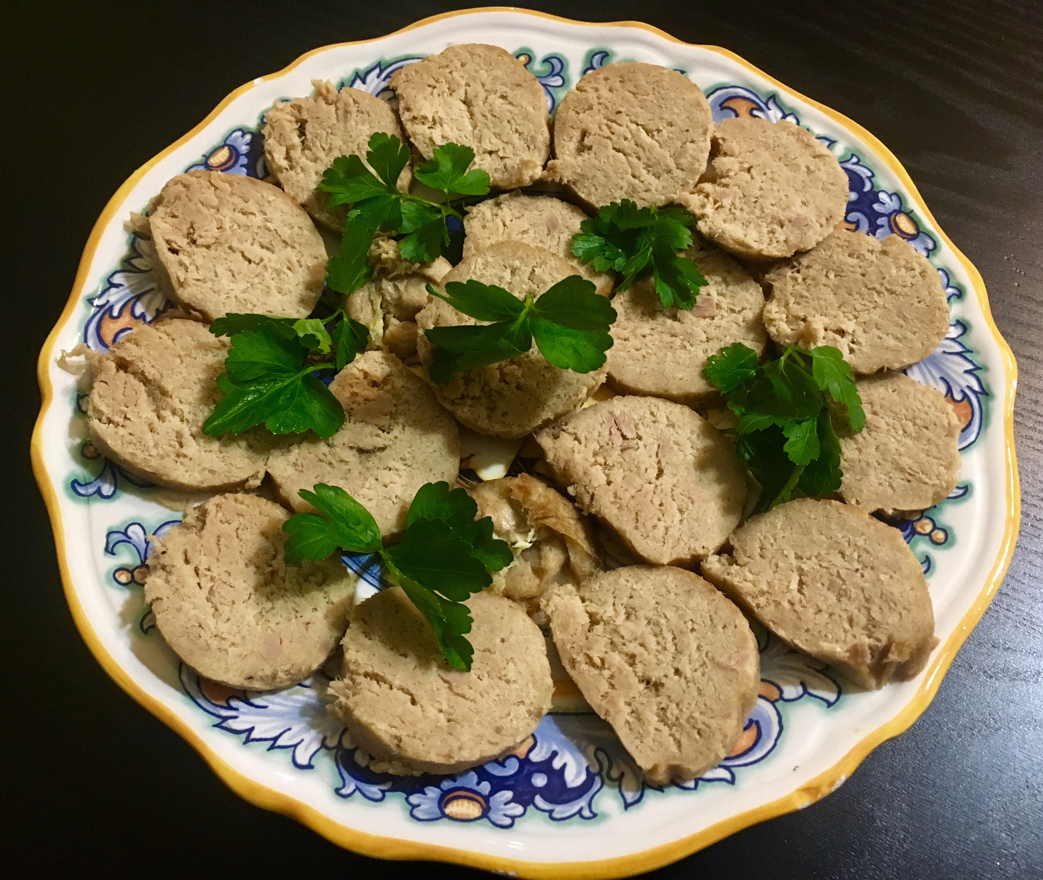 - Metti nell’acqua bollente i due salamini di polpettone di tonno e fai bollire per 20 minuti