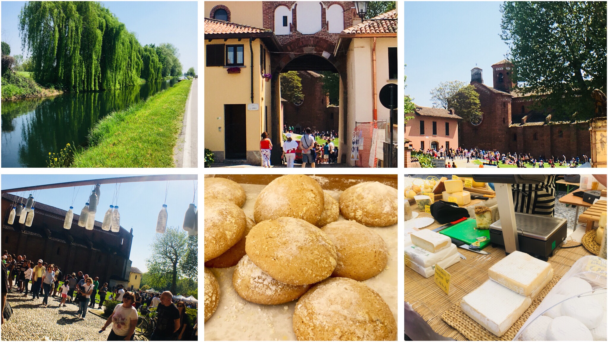permetteva all’acqua di prendere forza per consentire la navigazione e ai progetti lavorò anche, tra i tanti vari ingegneri, anche un Leonardo Da Vinci appena giunto a Milano nel 1482 e le cui chiuse sono ancora visibili. È il Naviglio Bereguardo a collegare Abbiategrasso a Morimondo. Un tempo era utilizzato perché era quello che, staccandosi dal Naviglio Grande, arrivava in Ticino ma cadde in declino una volta terminato il Naviglio Pavese. Il nuovo naviglio consentiva il non dover trasbordare delle merci via terra lungo un tratto del percorso. La mia camminata ha tutti i chiari tratti di una passeggiata in campagna, campi coltivati, qualche cascina, il gracchiare di qualche rana, il cinguettio degli uccelli, e moltissima gente a passeggio o in bici lungo il naviglio, insomma una pace che a Milano ci si può sognare. Il senso di beatitudine si fonde con quello di stupore quando arrivo a Morimondo. Il cartello che annunciava l’inizio del suo territorio ha il logo del circuito I Borghi più belli d’Italia e ciò è a ragion veduta perché è un luogo incantato. Che sia giorno di festa in questo posto da fiaba si nota subito, per le strade c’è un fantastico trenino rosso che porta in giro i turisti.