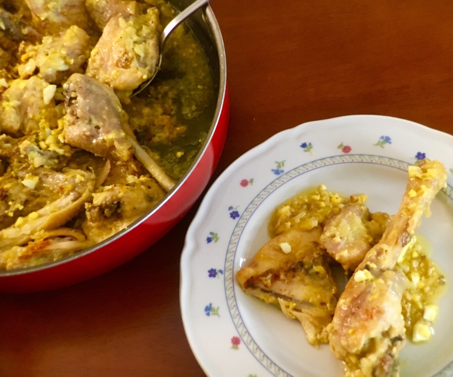 È una delle ricette spagnole più antiche della quale risalire all’origine è cosa di non facile affare. Ci proviamo a ricostruirla? Si dai, proviamoci! Il nome pepitoria e il colore che il pollo assume dopo cotto rimandano alla mente le pepite d’oro. Il merito di questa “preziosità” è di due ingredienti magici, lo zafferano e l’uovo sodo, che rendono i piatti, appunto, del colore dell’oro. In Guatemala la pepitoria è la polvere di semi di zucca tostati e macinati che si chiamano in spagnolo pepitas. Anticamente questo era un piatto della cucina povera, veniva realizzato con ingredienti semplici e di facile reperimento. Poca carne c’era in giro nelle case più umili quindi si usavano le rigaglie e le frattaglie di pollo. Il colore giallo non poteva essere dato dallo zafferano, spezia troppo pregiata e pertanto troppo cara, quindi si usava il giallo dell’uovo sodo. Anche la frutta secca da poter usare doveva essere semplice e non c’era niente di più facile da trovare dei semi di zucca. Ma come sempre è accaduto nel corso della storia, chissà per merito di quale chef, questo piatto arrivò nelle tavole ricche. Ad innamorarsi della ricetta in questione fu Isabella II, Regina di Spagna dal 1833 al 1868, che amò molto il pollo cucinato in questo modo. La ricetta vide, durante gli anni di Regno della suddetta, la sua massima fase di realizzazione in Spagna. Ovviamente, per essere degna di essere servita al cospetto di Sua Maestà la preparazione venne resa più nobile. Le frattaglie lasciarono quindi il posto al pollo vero proprio, per dare più colore e (senza meno) più sapore venne aggiunto dello zafferano, i semi di zucca (pepitas) vennero sostituite dalle più eleganti e raffinate mandorle. È un piatto di una bontà esagerata, non tralasciare assolutamente la fase della sfumatura della cipolla con il vino bianco perché si tratta di un passaggio chiave cioè, quello che conferisce al piatto finale la nota acida, essenziale per non smettere di mangiare un pezzo di pollo dopo l’altro.