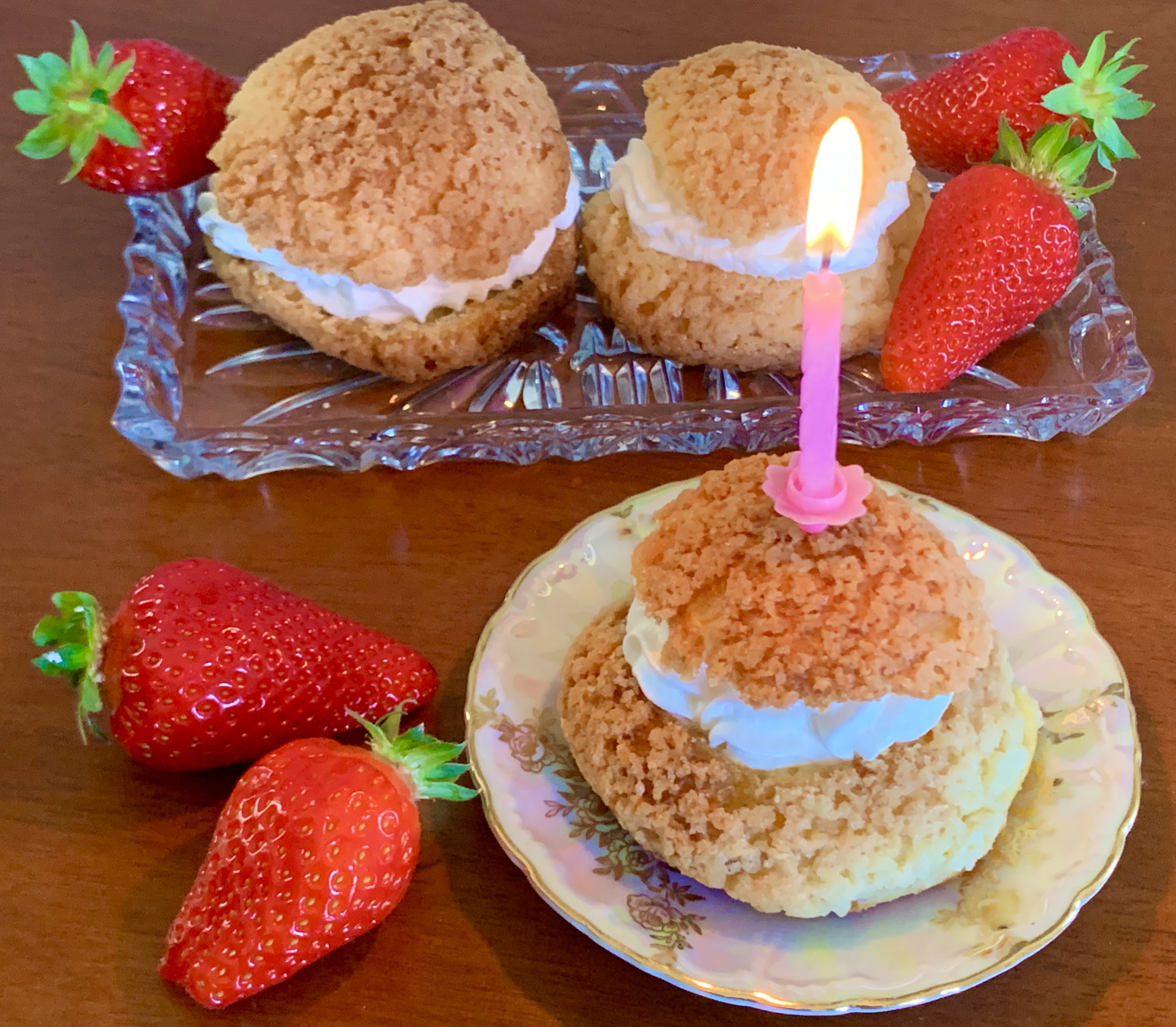 - quando si saranno raffreddati taglia la calotta del bignè craquelin e farcisci con panna fresca appena montata. Anche qui, fallo con l’aiuto di un sac a poche o di una siringa da pasticcere, ricopri con la calotta e…
