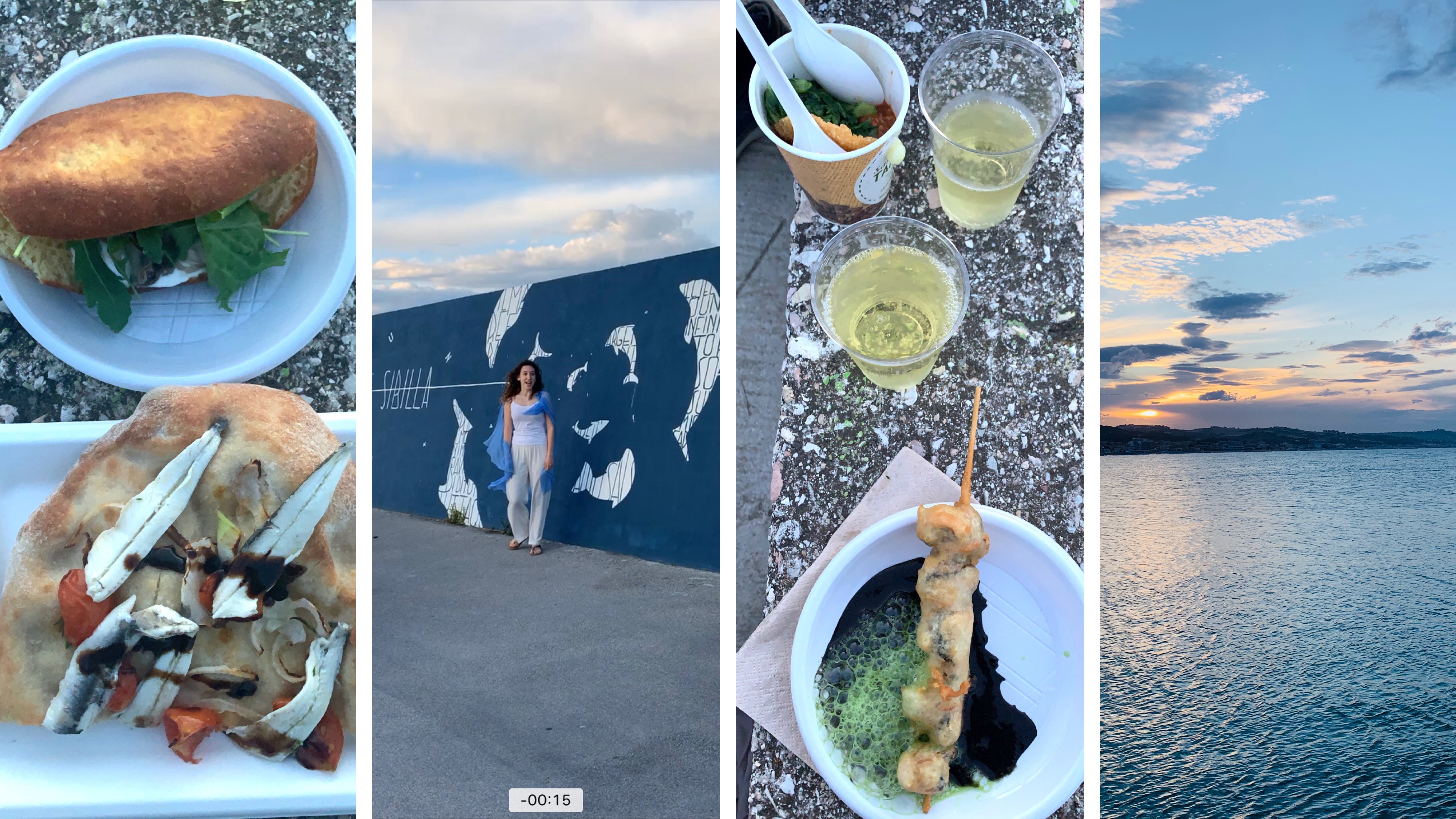 che disegnano il Porto di Civitanova Marche ed erano accompagnati anche dalla voce di una cantante e dalla musica di un violino e di una fisarmonica,
