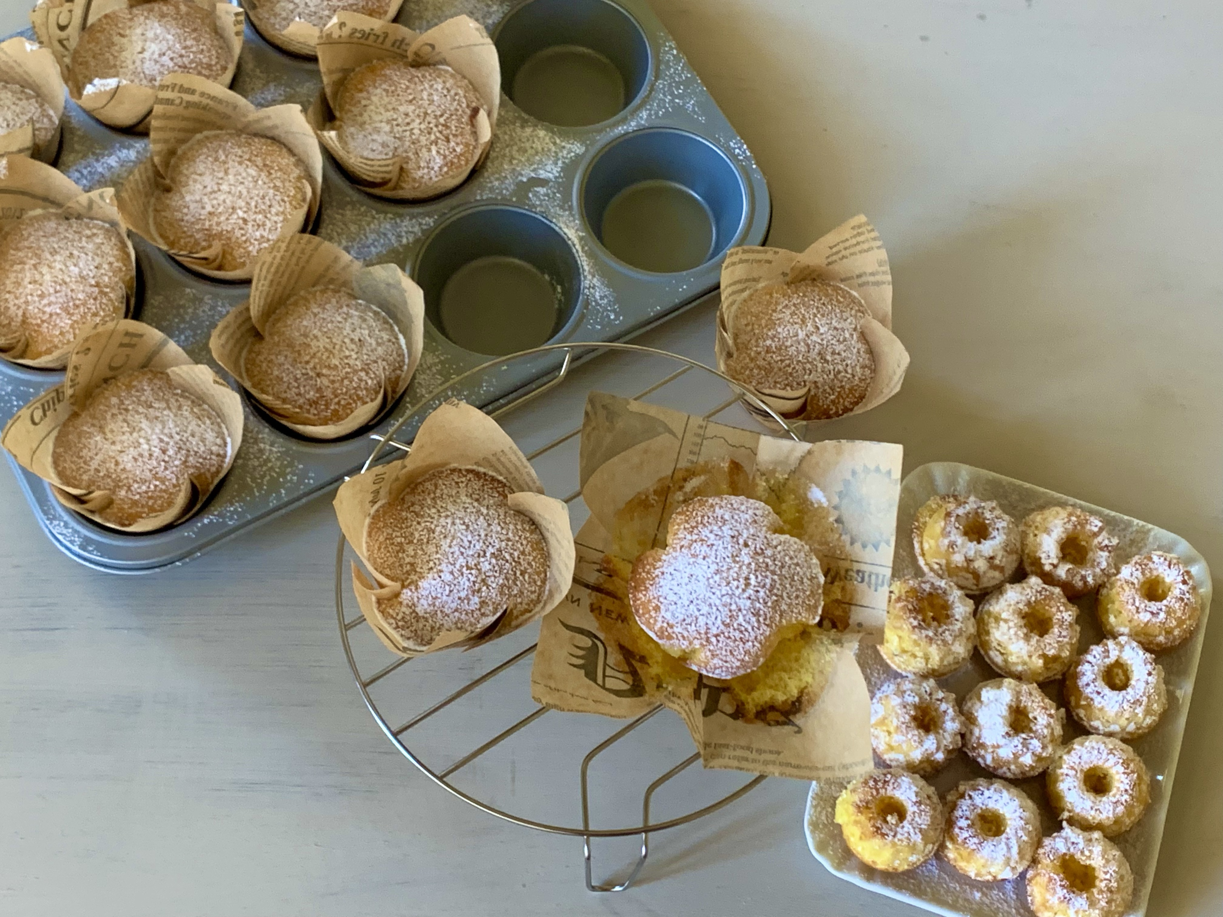 Il buon profumo del latto caldo che quando si mischia al burro diventa ancora più profumato. Di questi meravigliosi odori il nostro naso verrà invaso e la stanza dove starai preparando l’impasto lo stesso, che sia estate, che sia inverno, o autunno, o primavera (ammesso e non concesso che esistano ancora le mezze stagioni!). Li ho realizzati perché io adoro prepararmi i dolcetti da colazione, sempre diverse, sempre buone. Non li trovo in giro nei bar, nei forni, come li vorrei. Trovo tutta roba un po’ così quindi, me li preparo da sola. Pochi ingredienti, buoni, nessun preparato da laboratorio (sono poche oramai le attività che ne fanno a meno), per avere come risultato un prodotto da colazione buono, gustoso e, soprattutto, digeribile. Sono facilissimi da realizzare e se non hai una teglia da muffin non preoccuparti, l’impasto è della quantità giusta per essere cotto in una teglia da 20 cm di diametro e da almeno 9 cm di altezza.