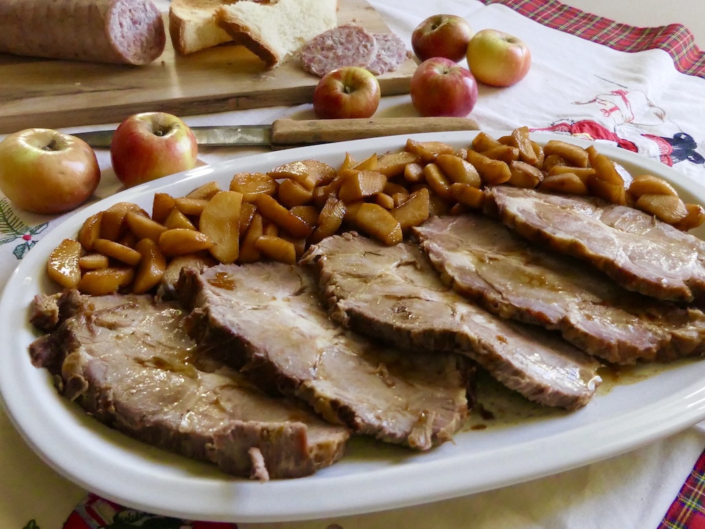 Arrosto di capocollo di maiale con contorno di mele saltate